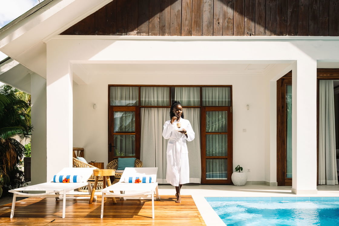 Choose from our 2 spacious 115 m² tastefully furnished villas, nestled just behind the beachfront pool villas. This spacious and elegantly designed retreat offers a private pool and serene garden surroundings. A perfect blend of comfort, privacy, and natural beauty just few steps from the beach.