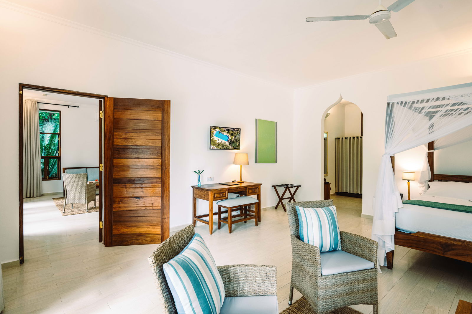 Eleven luxury 70m² villas are set amidst swaying palm trees and lush serene tropical gardens. Most villas boast garden views and adjoining doors perfect for families and friends.